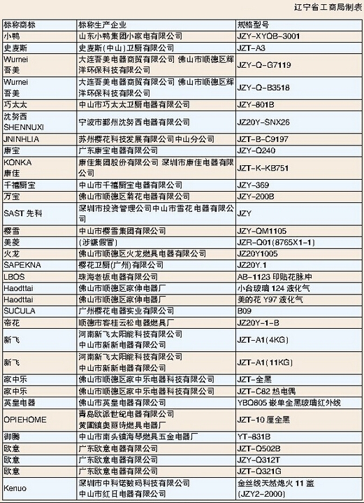 近日,遼寧省工商局公布了省內(nèi)11個(gè)地區(qū)的家用燃?xì)庠罹哔|(zhì)量抽查檢驗(yàn)結(jié)果。經(jīng)過對(duì)抽取的樣品進(jìn)行檢驗(yàn),有63種規(guī)格型號(hào)的家用燃?xì)庠罹弑徽J(rèn)定為危及人身財(cái)產(chǎn)安全且不符合國(guó)家強(qiáng)制標(biāo)準(zhǔn)的嚴(yán)重不合格商品。