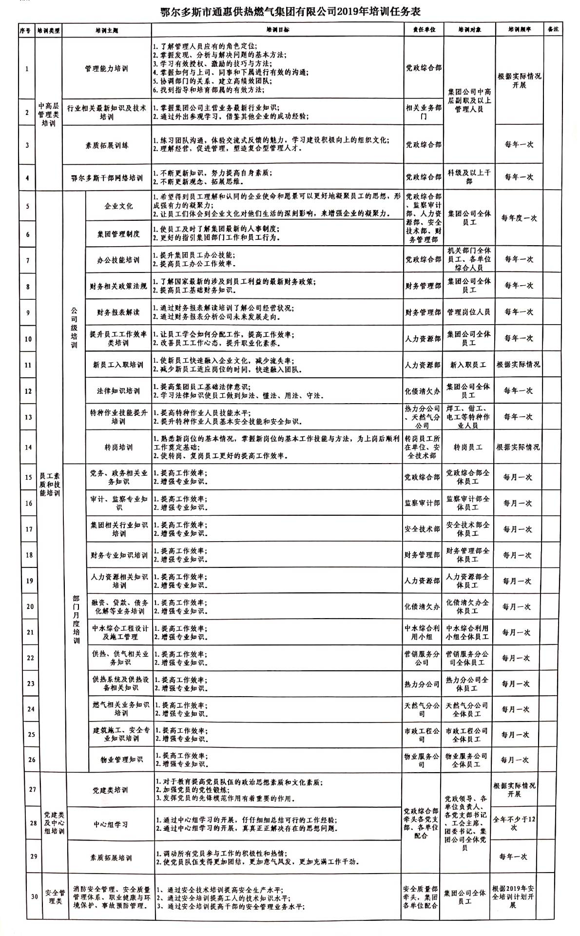 鄂爾多斯市通惠供熱燃?xì)饧瘓F(tuán)有限公司2019年培訓(xùn)計(jì)劃
